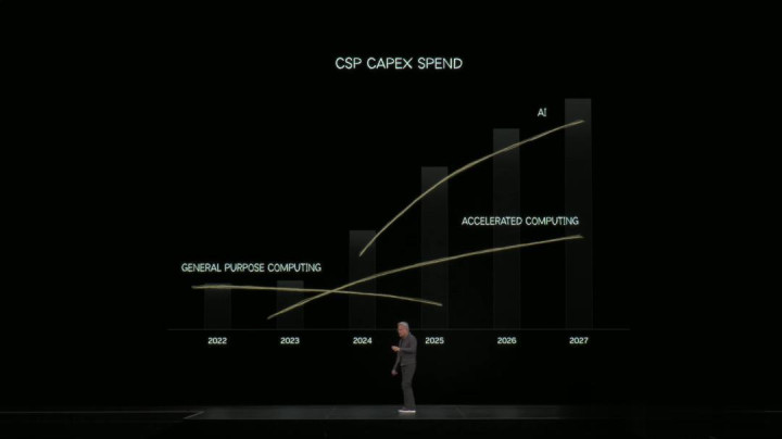 老黄展示了,全球六大云巨头的资本支出曲线(CapEx),正以史无前例的速度飙升。