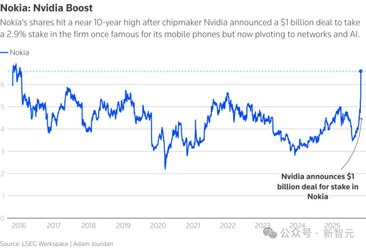 与此同时,英伟达还将以每股6.01美元的认购价向诺基亚投资10亿美元。