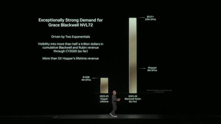 老黄预测,在2026年底前,仅凭「Blackwell+Rubin」就足以冲击5000亿美元的营收。