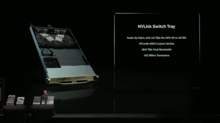 其底部配备了8个Rubin CPX GPU、BlueField-4数据处理器,还有两颗Vera CPU,以及4个Rubin封装——总共8个GPU,全部实现了无缆、全液冷。